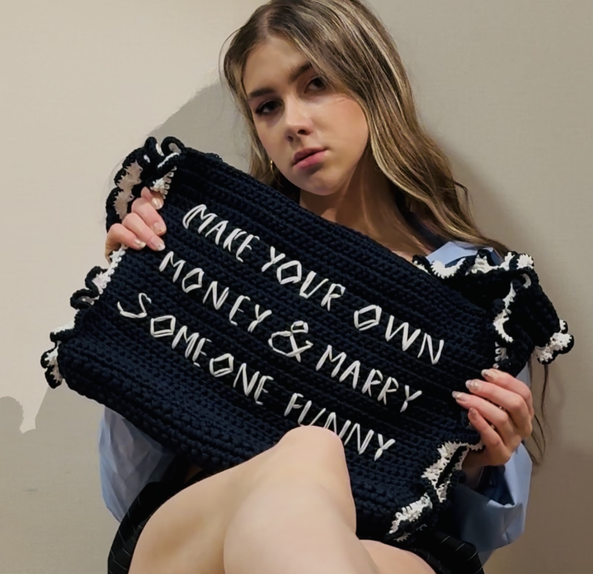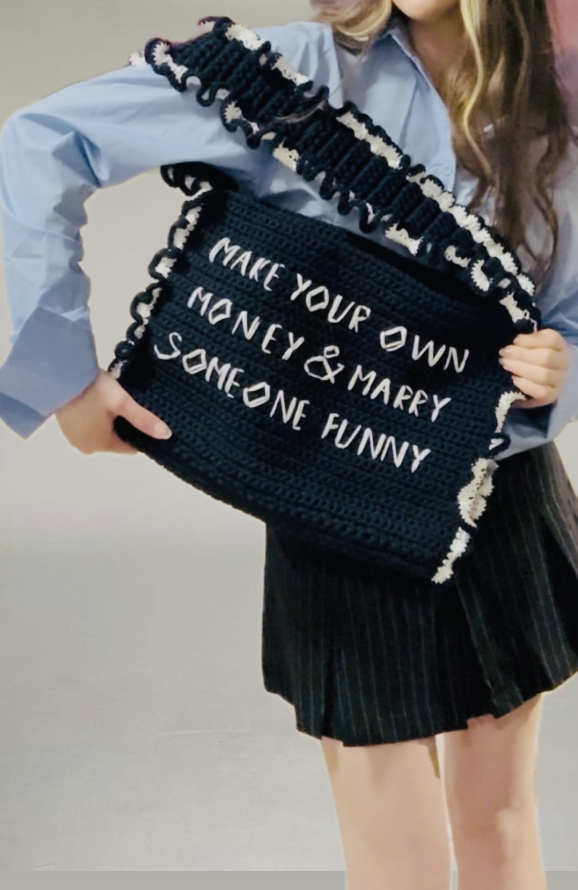 Сумка для strong&independent girls, туда поместиться все ваши рабочие штучки, включая ноутбук, при этом изделие добавить вашему образу стиль и уникальность. Invest in yourself💫 Сумка застегивается на магнит и имеет большой внутренний карман🤍 Размер: 40 Х 30 см Состав: выполнена из хлопкового полиэфирного шнура