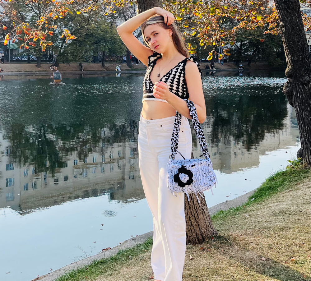 Сумка багет "Moscu" - вязаное изделие ручной работы из трикотажной пряжи от TERESHKINA. Сумка выполнена в классических черно-белых тонах, поэтому ее можно легко стилизовать, и она буквально подойдет к любому твоему образу, при этом добавит уникальность. Изделие выполнено из хлопка, что делает его мягким и приятным на ощупь. Вязаная текстура придает изделию уникальный и неповторимый вид. Основная часть сумки выполнена из белой пряжи с черными вкраплениями и бахромой. Также в комплект к сумке идет брелок цветочек на карабине, он может служить стильным дополнением к этой сумке или к любой другой вещи в твоем гардеробе. Сумка имеет размеры 25.0 см в высоту, 13.0 см в ширину и 6.0 см в глубину, в нее поместятся все необходимые вещи, для нас важен твой комфорт и удобство в использовании. Выбирая сумку багет "Moscu" от TERESHKINA, ты получаешь стильный и уникальный аксессуар, который точно не оставит тебя незамеченной. Сумка может стать также отличным подарком подруге, любимой девушке или маме, мы отправляем наши изделия в коробках с логотипом бренда, тебе не нужно думать об упаковке, мы все сделаем за тебя с вниманием к каждой детали. Сумка продается в единственном экземпляре, стань той самой обладательницей сумки "Moscu".