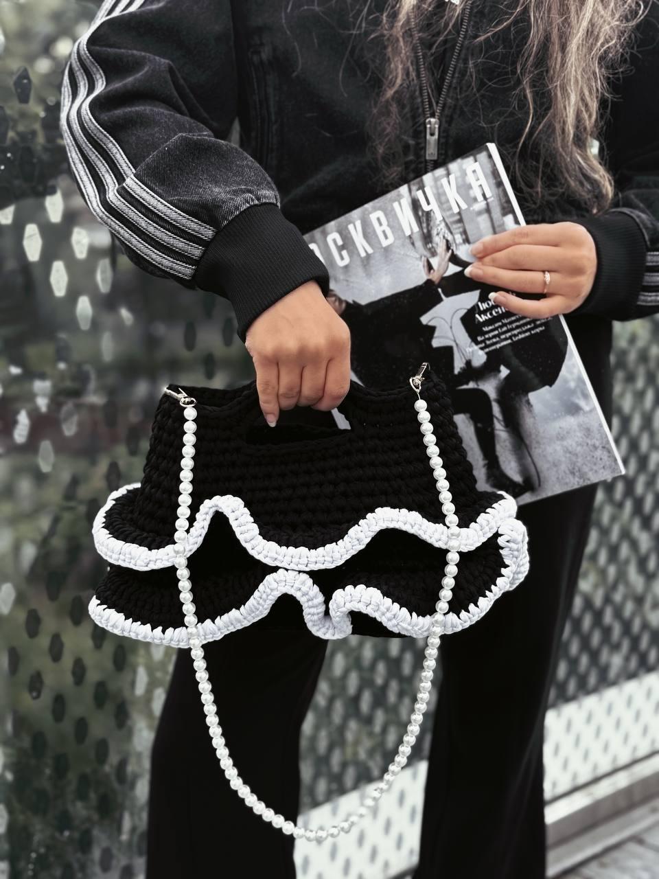 Сумка "Москвичка" - вязаное изделие ручной работы, которое вдохновлено элегантным стилем Москвы. Сумка выполнена в черном цвете из трикотажной пряжи с оригинальной оборкой с белой вставкой, которая добавляет ей изысканность и точно дополнит твой образ. Размеры сумки составляют 21 см в высоту, 27 см в ширину и 8 см в глубину, туда точно поместятся все необходимые тебе вещи и даже больше. Более того, для удобства внутри сумки содержится косметичка в черном цвете в размере 23 Х 14 см, чтобы все драгоценные вещи были в сохранности. Сумка изготовлена из хлопка, материала, который отличается своей прочностью и долговечностью. Благодаря этому, сумка будет служить вам долгое время, сохраняя свой первоначальный вид. Изделие легко можно стилизовать с твоими casual образами, а также вечерними нарядами. Мы обещаем, что она станет той самой вишенкой в твоих образах. Выбирая сумку "Москвичка" от TERESHKINA, ты получаешь стильный и уникальный аксессуар, который точно не оставит тебя незамеченной. Сумка может стать также отличным подарком подруге, любимой девушке или маме, мы отправляем наши изделия в коробках с логотипом бренда, тебе не нужно думать об упаковке, мы все сделаем за тебя с вниманием к каждой детали.