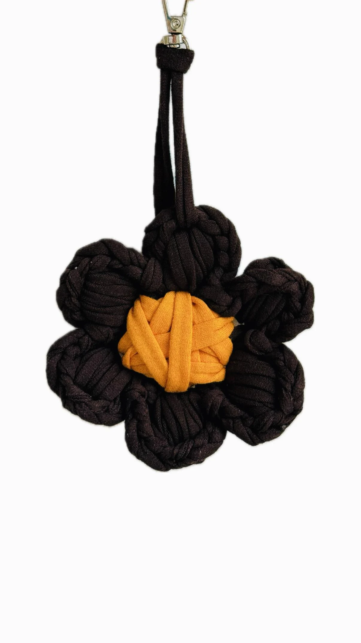 Брелок "Flower" - стильный и оригинальный обвес ручной работы, который станет отличным дополнением к вашей сумке или любому другому элементу гардероба. Брелок выполнен в виде цветка из хлопковой трикотажной пряжи в ярком и необычном сочетании, а именно в цвете мокко и горчичном в сердцевине. Такой аксессуар точно добавит уникальности твоему образу и не оставит тебя незамеченной. Брелок оснащен удобным держателем - карабином, который позволяет надежно закрепить его на сумке или на другом любом изделии. Выбирая брелок "Flower" от TERESHKINA ручной работы, вы получаете стильный, качественный и оригинальный аксессуар, который подчеркнет вашу индивидуальность и станет отличным дополнением к вашему образу. Мы аккуратно запаковываем каждый брелок в отдельную упаковку, так что это может стать отличным подарком для твоей подруги, мамы или любимой девушке.